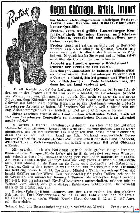 Letzebuerger Confection's Fabrik Protex - Publicité -