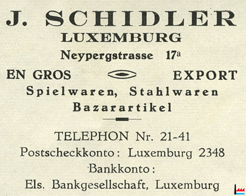 | 3.1934 | J. Schidler 17a rue Neyperg Luxembourg-gare En gros - Export Spielwaren, Stahlwaren, Bazarartikel |