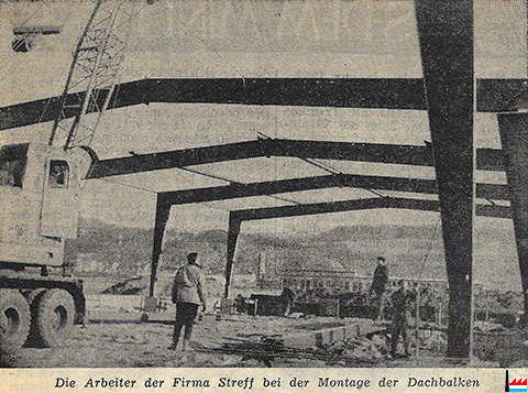 | 18.2.1966 | Eine Gießerei an der Mosel Die Gesellschaft setzt sich aus zwei Hauptteilhabern zusammen, einerseits aus dem Unternehmen De Muyser Robert & Cie andrerseits aus der Commercial Shearing and Stamping, Youngstown/Ohio. Der Commercial Shearing and Stamping gehört gleichfalls die Commercial Hydraulics S.A. in Diekirch, welche sich mit der Herstellung von komplizierten Ölpumpen Hebe- und Zugmaschinen beschäftigt. Zur Fabrikation dieser Ölpumpen sind höchstpräzise Gußeisenteile von besonders edler Qualität erforderlich, die von der Muttergesellschaft in Youngstown/Ohio geliefert und in Diekirch zu fertigen Ölpumpen zusammengebaut werden. Die Herstellung dieser Gußteile wird in Zukunft die EUROCAST in Grevenmacher übernehmen. Dieser neue Gießereibetrieb wird jedoch keine Gießerei traditioneller Gestallt sein und den hierzulande alteingesessenen Gießereien keine Konkurrenz machen. Das hochautomatisierte und relativ ruß- und rauchfreie Produktionsverfahren ist dem Fertigprodukt angepaßt : für den Export - anfangs bloß nach Frankreich und Deutschland - werden komplizierte Spezialmaschinenteile, Präzisionsventile für Pumpen und ähnliche, mit der Hydraulik zusammenhängende Fabrikate hergestellt; ein modernes Gießverfahren stellt die Voraussetzung für Präzision und Qualität. Erstklassiger Stahlschrott wird aus den Stanzwerken in Frankreich und Deutschland, eventueII auch Belgien und kleiner Teil aus Luxemburg, eingeführt und gibt den Grundstoff für die Gußteile ab. Die einzelnen Gußformen werden von drei Spezialmaschinen hergestellt nach einem Verfahren, das die Bezeichnung „Maskenformguß" trägt. Die Form selber besteht aus zwei Schalen, welche in der Maschine aus einem Sand- und Plastikgemisch über einem erhitzten Modellteil aus Stahl zusammengeschweißt und aneinandergefügt werden. Die Herstellung der Form nach diesem Verfahren benötigt wenig Zeit, außerdem kann für jeden Gußteil eine neue Form benützt werden, wodurch eine sehr präzise Verarbeitung der einzelnen Fabrikate garantiert wird. In der Anlaufperiode der Produktion wird voraussichtlich ein einziger Schmelzofen mit einem Fassungsvermögen von 4 to genügen, später soll dann noch ein zweiter Ofen gleichen Formats hinzukommen. Geschmolzen wird im elektrischen Induktionsprozeß, was voraussetzt, daß die EUROCAST ihr eigener Stromlieferant wird. Hierzu steht eine 1600 PS-Diesel-Stromerzeugungsanlage bereit. In einem 3-Schichten-Rhythmus beläuft sich, die Ofenproduktion pro Einheit auf rund 30 to in 24 Stunden. Zwei Hauptursachen für die Ortswahl der EUROCAST stehen im Vordergrund : die Gemeinde Grevenmacher war von Anfang an an einer industriellen Niederlassung interessiert, sie stellte das Baugelände bereit und gab ihre Zusicherung, bei der Rekrutierung der Arbeiterschaft behilflich zu sein. Andrerseits schien die unmittelbare Nähe des Moselhafens den Verantwortlichen der Gesellschaft von größter Wichtigkeit und Notwendigkeit. Bei der Aufnahme der Produktion rechnet man bei EUROCAST zunächst mit einer Belegschaft von 12 Leuten nebst drei bis vier Leuten Büropersonal. Etappenweise wird in absehbarer Zukunft pro Schicht ein weiteres Dutzend Arbeiter gebraucht werden ; bei voller Produktion kann die Grevenmacher Fabrik in den zunächst geplanten Räumlichkeiten rund 40 Leute beschäftigen. Allerdings ist das Gebäude solcherart geplant, dass notwendigenfalls eine zweite Produktionshalle, ein Spiegelbild der ersten, ohne wesentliche Schwierigkeiten hinzugebaut werden kann. Die Rekrutierung der Arbeitskräfte geschieht in enger Zusammenarbeit mit den Gemeindeverantwortlichen der Moselstadt, wobei Sorge getragen wird, daß den ansässigen Betrieben durch allzu großer Arbeiterwegfall keine Schwierigkeiten entstehen. Gleichwohl die EUROCAST bloß 6-7 Kilometer vom Moselhafen entfernt ist, wird zu Beginn der gesamte Transport mit Lastwagen bewältigt. Später soll aber der Export der schweren Gußeisenteile nach Deutschland und Frankreich, sowie die Einfuhr der Rohprodukte Stahlschrott, Sand und Dieselöl mit Moselschiffen bewerkstelligt werden. („Neue Industrien fürs vierte Jahr“ - Paul Neyens - d’Lëtzebuerger Land - n° 7 - p. 3 - 18.2.1966) |