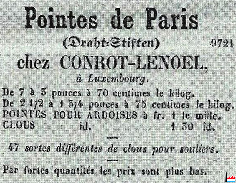 | 1857, 1860 | Pointes de Paris chez Conrot-Lenöel Drahtstifte bei Conrot-Lenoël |