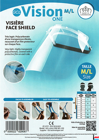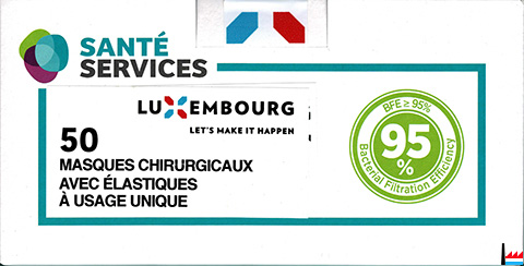 Surgical Face Masks with Earlops - BFE >= 95 % - Made in Luxembourg - Masques chirurgicaux avec élastiques - Santé Services S.A., Luxembourg, 9 rue Edward Steichen - www.medlogistics.lu (Collection: industrie.lu)