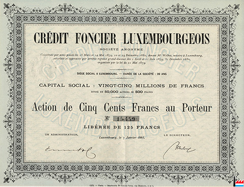 | 1879 | Fondation - Gründung: Société anonyme de Crédit Foncier Luxembourgeois |