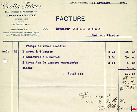 | <=11.1924 | ![]() Crolla frères, entrepreneurs de constructions, Esch/Alzette, tél: 467 (Collection: industrie.lu) |