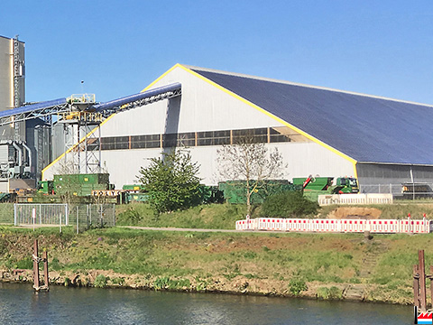 | Projekt Produktions- und Logistikzentrum "De Verband Group" in Perl-Besch / Deutschland: Getreidesilo Flachlager Futtermittelfabrik Anmietung eines bestehenden Düngerlagers Alle Lager- und Produktionsanlagen sind über Förderband direkt mit dem Moselkai verbunden |