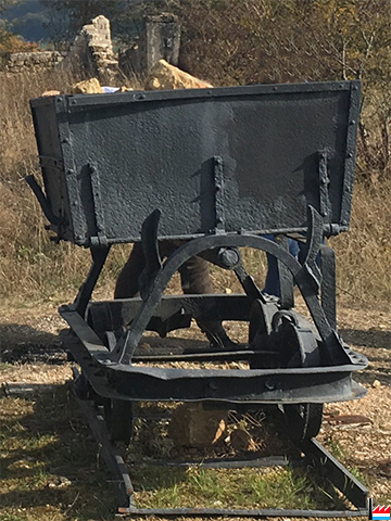 Kalleksuewen, um Lopert zu Ettelbréck. Do ass bis 1946 (?) Kallek gebrannt ginn. De Site ass amenagéiert an et ass och e Lorry mat engem Stéck Gleis opgestallt ginn. Op engem Informatiounspanneau steet och eng Zeitungsannonce vu 1946, wou dat ganzt verkaaft gouf, mat Gleisuschloss. (Photos: 16.10.2018 Nico Mercatoris)