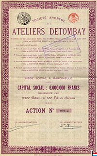 | 4.1907 | Schoepp Johan, ingénieur, directeur de la Société Anonyme des Ateliers Detombay, 141 Chaussée de Philippeville, Marcinelle | ||