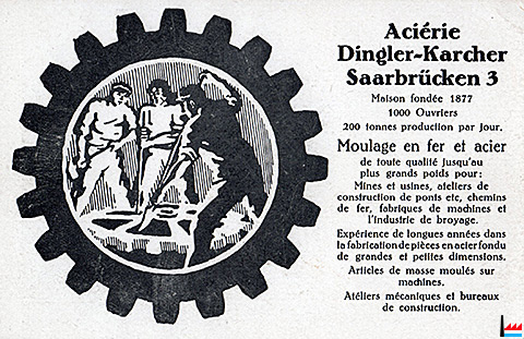 | 1.1920 | Gründung - Fondation: Aciéries sarroises Dingler - Karcher & Cie, Saarbrücken sàrl Capital: 4.000.000 Marks |