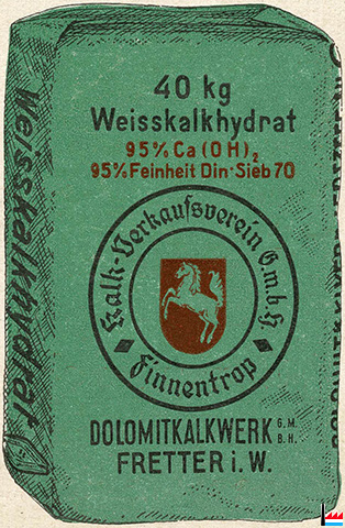 40 kg Weisskalkhydrat, Dolomitkalkwerk Fretter in Westfalen. (Collection: industrie.lu)