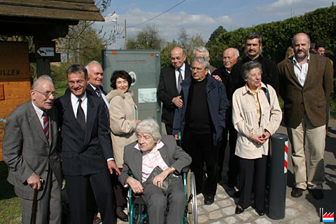 M. Jacky Martin-Godchaux (arrière petit fils de Samson Godchaux), Mme Colette Flesch (échevin de la ville de Luxembourg), M.Hubert Marx (président du Syndicat d’interêts locaux Hamm-Pulvermuhl), Mme Colette Mart (membre du conseil communal) et Yoel Sher (arrière-arrière petit fils de Guetschlick et de Samson Godchaux) lors de l'inauguration du Circuit Godchaux (Photos: 28.4.2006 jmo)