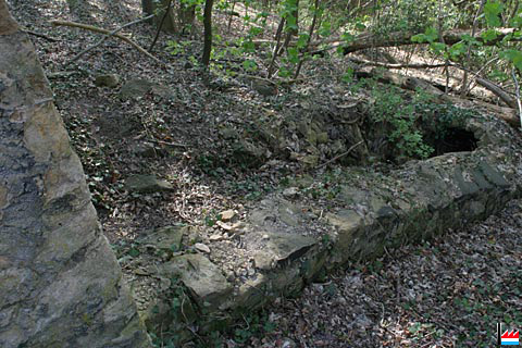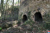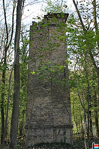 Anciennes cheminées doubles en pleine forêt, avec les 2 tuyaux, construits en pierres, évaquant la fumée des usines Godchaux de Schleifmühle se trouvant dans la vallée de l'Alzette (Photos: 28.4.2006 jmo)