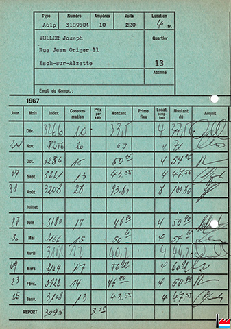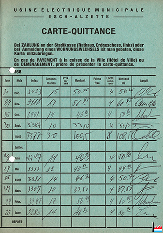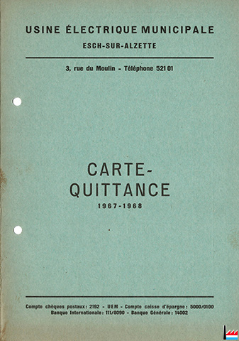 Carte-Quittance - Usine électrique municipale Esch/Alzette 1967-68 (Collection: industrie.lu)