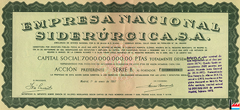 Empresa Nacional Siderúrgica Sociedad Anónima - Acción preferente serie B al portador - 1957 (Collection: industrie.lu)