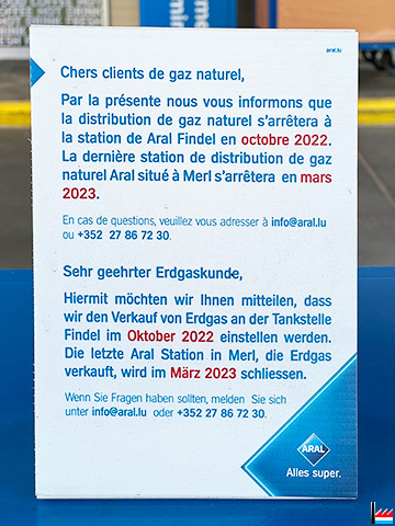 ![]() ARAL - Erdgas - CNG in Luxemburg - Merl, 246 route de Longwy (Photos: 3.10.2022 jmo) |