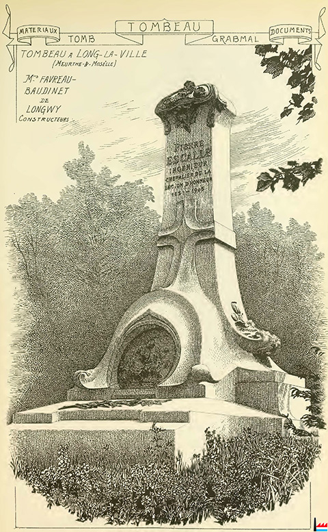 Sépulture art nouveau élevé en 1903 (cimetière Sainte-Barbe) à l’occasion du décès de Pierre Escalle, directeur adjoint de la Société des Aciéries de Longwy