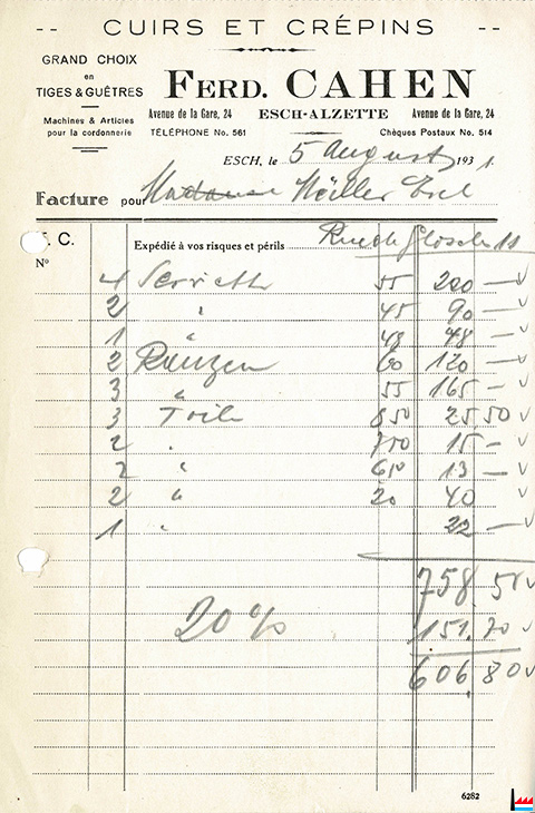 | <=1931 | ![]() Cuirs et Crépins Ferd Cahen, 24 avenue de la Gare, Esch/Alzette - 1931 (Collection: industrie.lu) Tél: 561 |