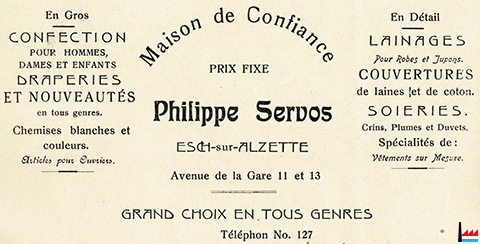 | <=12.1911, 1.1912, 1913 | Konfektionshaus Philippe Servos, Esch/Alzette, 11 - 13 Bahnhofavenue - avenue de la Gare (Arme Teufel: 31.1.1912) |
