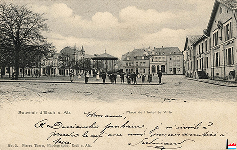 Esch/Alzette - Stadthausplatz - place de l'Hôtel de Ville - vers 1903 (Carte postale: N°3, Pierre Thorn, Photographe, Esch/Alzette; Collection: industrie.lu)