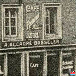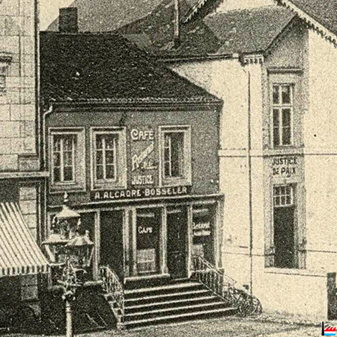Café - Restaurant de la Justice - A. ALCADRE-BOSSELER, Esch/Alzette, place du Marché - à la droite: Justice de Paix - <=10.1919 (Extrait carte postale No 11 Manufacture de cartes P. Houstraas, Luxembourg, Rue des Augustins; collection: industrie.lu)