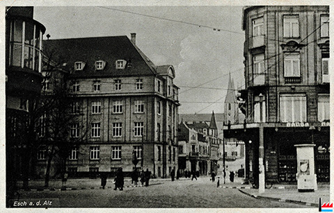 | 8.1913 | Esch a. d. Alz., 29. Aug. Man schreibt uns: Der Steinhaufen in der Ferrerstraße neben dem Hause P. Flesch soll in den ersten Tagen entfernt werden. Herr Bauunternehmer J. Logelin aus Differdingen wird dieselben dazu verwenden, um auf dem Norbert-Metz-Platz an Stelle des alten Hôtel Klop einen Prachtbau zu errichten, zu dem Herr Architekt Suttor aus Luxemburg die Pläne lieferte. (t: 29.8.1913) |