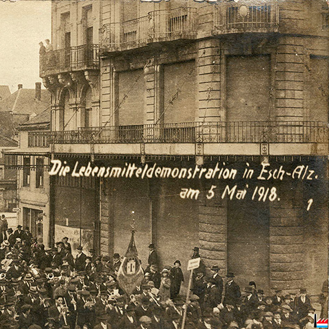 | 3.1914 | Esch/Alzette - Die “Obermosel-Zeitung" vernimmt, die Firma Knopf aus Luxemburg reflektiere darauf, in dem an dem hiesigen Marktplatz gelegenen Neubau Logelin (vormals Hôtel Klop) ein Zweiggeschäft zu errichten. (t: 7.3.1914) |