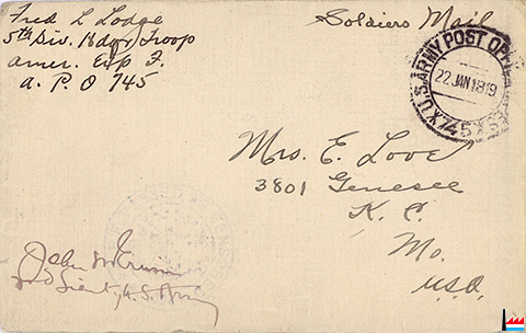 | <=6.4.1919 | 1st floor: APO 745 = 5th Division 2d floor: YMCA reading room |