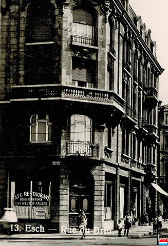 | 16.9.1933 | Geschäfts-Verlegung. Teile andurch einer werten Kundschaft und Einwohnerschaft der Stadt ESCH und Umgebung freundlichst mit, dass ich Unterzeichneter mein Café-Reslaurant von der Victor Hugostrasse nach Ecke Brill- und Alzettestrasse (vormals Café Jean WOLTER) verlegt habe. Jeden Tag Auftreten des berühmten Variété Ebenrechts. NEU für ESCH |