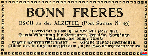 | 24.2.1910 | Möbel- und Ausstattungs-Geschäft Bonn Frères - Esch an der Alzette |