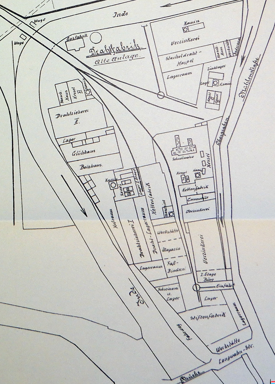 Langwahn - Straße, Inde, Mühlenstraße (= Indestraße), Steinstraße, Eschweiler