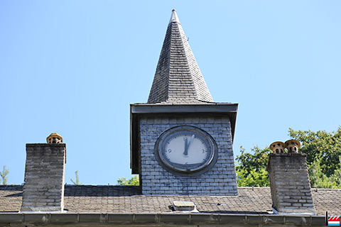 Grube Fentsch - Mine de Fontoy: Entrée de mine monumentale - ornée de créneaux et d'une tour-horloge(Photos: 7.12.2016 jmo)