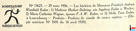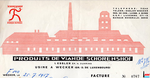 | 1959 | Produits de Viande Schorenshof, Usine à Wecker Mme Esslen ép. Duhring |
