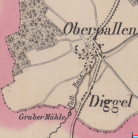 ![]() Oberpallen: Grubermühle - Faxmühle (Carte Jean-Baptiste Liesch - 1862) |