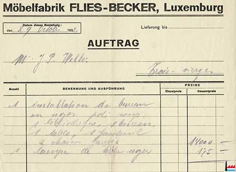 | 1932 | ![]() Möbelfabrik Flies - Becker, Luxemburg - 1932 - Auftrag: J.P. Welter, Troisvierges (Collection: industrie.lu) |