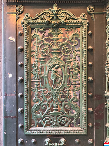 Grille en fonte d'une porte de la Fonderie de Tusey - à Metz (Photos: 22.8.2017 jmo)