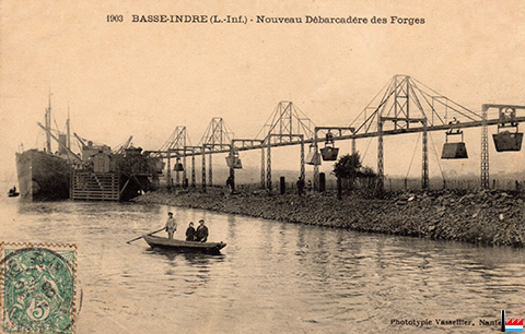Forges de Basse-Indre - transporteur aérien - nouveau débarcadèrec - vers 1906 (Carte postale: Phototypie Vassellier, Nantes; Collection: industrie.lu)