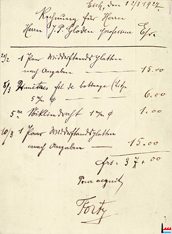 | <=1927 | ![]() Forty Pierre, constructeur, Esch/Alzette - Rechnung für J.P. Gloden, professeur, Esch - 1927 (Collection: industrie.lu) |