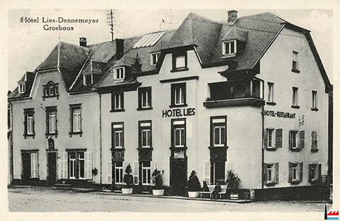 Hôtel Lies-Dennemeyer Michel, Grosbous, Tél. 13 - vers 1938 (Carte postale: Edit. Frank & Fils, Bettborn; collection: industrie.lu)