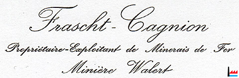 | <=1927 | Frascht - Cagnion, Rumelange Propriétaire-Exploitant de Minerais de Fer Minière Walert |