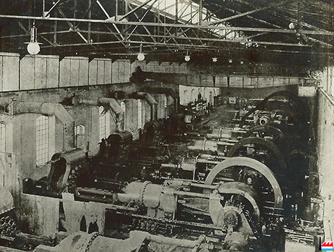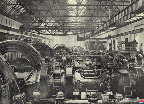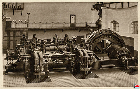 Gasmotoren N°5 - 6 - an 7 an der Zentral 2 - Nürnberger Gasdynamomaschinen in Differdingen - um 1908 (Collection: Marcel Schlim)