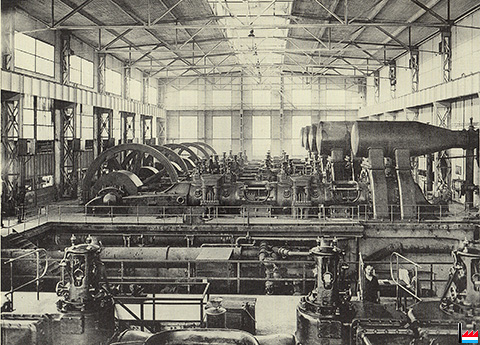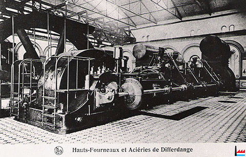 | 1907 | ![]() Usine de Rodange - Intérieur de la centrale (Collection industrie.lu) au premier plan: groupe vapo-électrique N° 6 Van den Kerchove En suite: la soufflante à vapeur La Meuse N° 5 et les 2 soufflantes à gaz Ehrhardt & Sehmer N° 3 et 4 |
