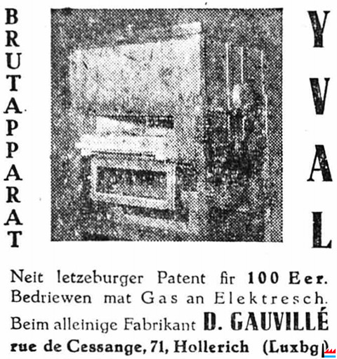 | 1945 | D. Gauvillé, 71 rue de Cessange, Hollerich Brutapparat YVAL Fabrikant |