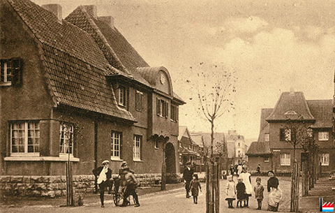 Esch/Alzette: Villenkolonnie im neuen Stadtviertel: Ingenieurhäuser der Gelsenkirchener Bergwerks A.G. in der Hoeter-Straße (heute: rue Bessemer) in Esch/Alzette - Poststempel: 12.8.1919 (Carte postale: Edition artistique P.C. Schoren, Luxembourg-Gare; Collection: industrie.lu)