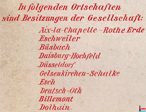 Aachen-Rothe Erde, Eschweiler Drahtfabrik, Büsbach, Duisburg - Hochfeld (Hütte Vulkan), J.P. Piedboeuf & Co Röhrenwerk A.G., Düsseldorf, Hochöfen Gelsenkirchen-Schalke, Aachener Hütte - Esch, Adolf-Emil-Hütte Esch, Deutsch Other Hütte, Billemont, Dolhain