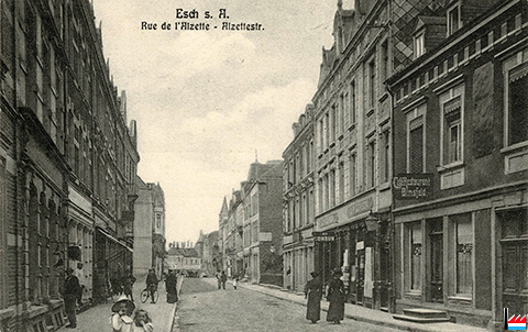 Geschäftsverlegung. Meiner werten Kundschaft von Esch und Umgegend zur gefälligen Mitteilung, daß mein Schuhgeschäft (...), bis zum nächsten 25. Dezember in mein neues Haus Alzettestraße Nr. 16 (elo 20) neben Hrn. Photograph Thorn und vis-à-vis Hrn. Gerson verlegt wird. (...). Meisch-Leyder. (Arme Teufel: 25.12.1910) |