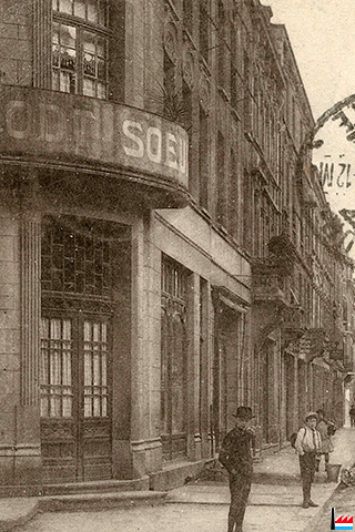 Esch/Alzette: Coin de la rue Neuve (= rue de la Libération) avec rue de l'Alzette: GLODT soeurs - <=10.1919 (Carte postale: Edition Freylinger, Esch/Alzette; Collection: industrie.lu)