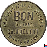 ![]() Fabrique de jeux de quilles Goedert Charles, Mühlenbach - D.P.H. - Jeton |