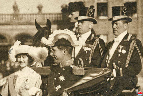 Großherzogin Marie Adelheid mit dem König von Belgien Albert (Albert Ier, roi des Belges) in der großherzoglichen Kutsche am Bahnhof-Luxemburg - 27.-29.4.1914 (Carte postale: Grieser, Luxemburg, Photo-Druck; collection: industrie.lu)