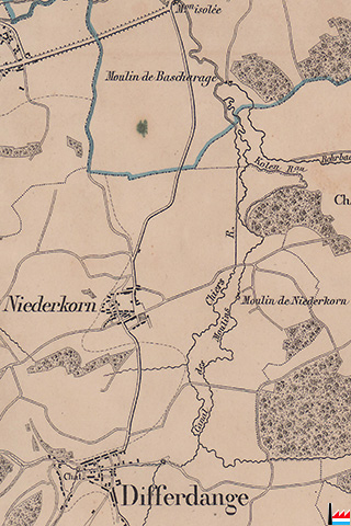 Canal des moulins, Niederkorn (Carte Jean-Baptiste Liesch - 1862)