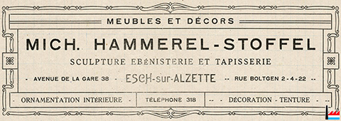 | <=1946 | Michel Hammerel - Stoffel Ateliers d'ameublement Esch/Alzette, 42-44, avenue de la Gare |