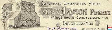 | <=1928 | Réfrigérants HAMON S.A., Bruxelles, 13 rue des Quatre-Bras Porte Louise |