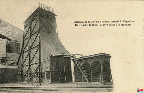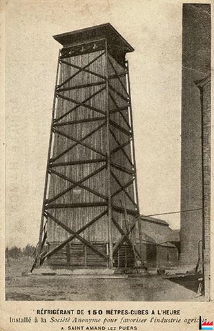 ![]() Réfrigérant de 150 m3/h installé à la Société Anonyme pour favoriser l'industrie agricole à Saint Amand lez Puers (Carte postale: collection: industrie.lu) Achille HAMON, Bruxelles, 329 avenue Van Volxem et 409 rue de Mérode |